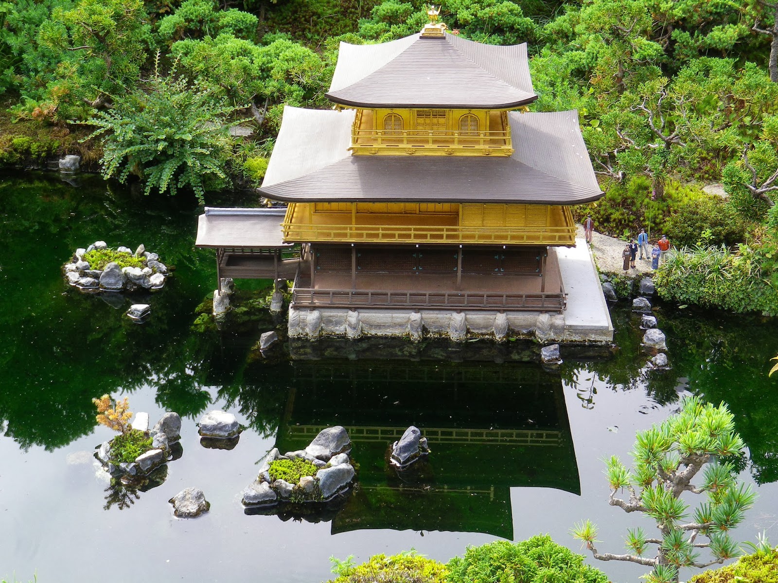 日本の歴史ゾーンで見ておきたいのがこちら。建物に使われているのは、本物の金箔です。また、こちらも盆栽などの庭園美にも注目しておきたいところですね。金閣