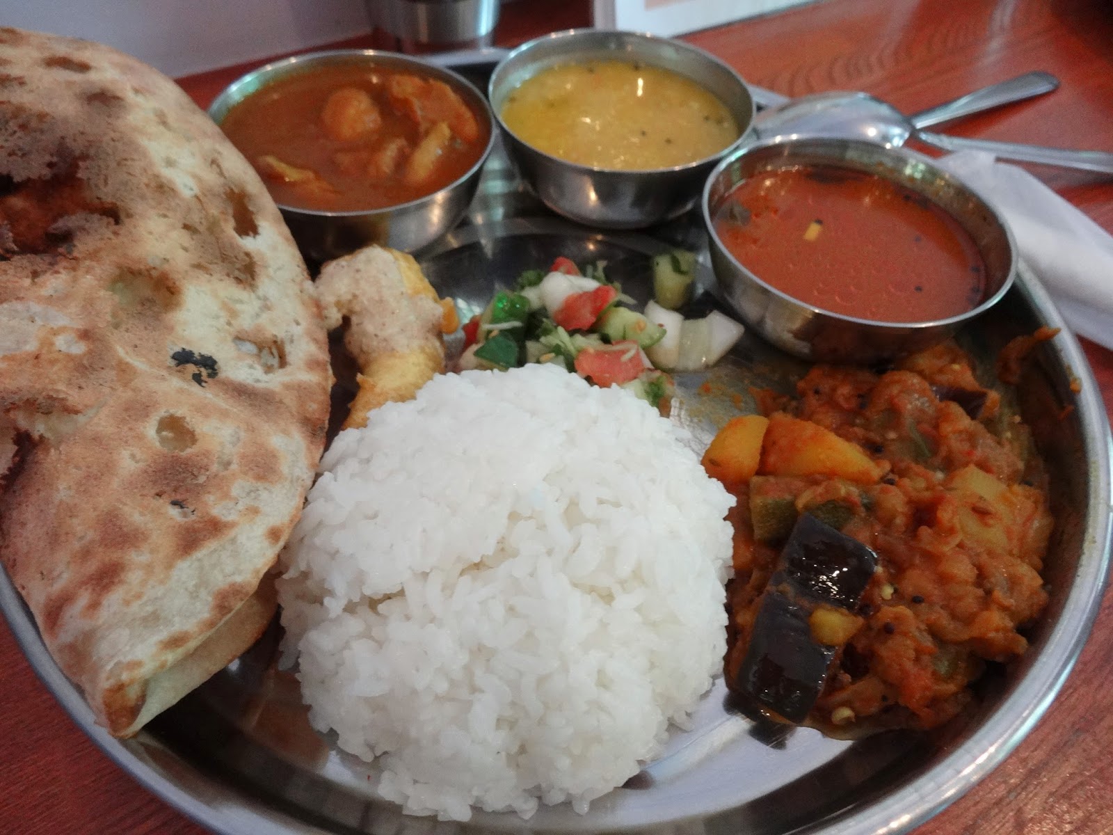 インドは広し!大きく分けて北インドと南インドと呼ばれますが、地方も違えばその家庭の味も全く違うそうです。よくある「インド料理」というのは実は北インド料理店が多いのです。そんな中、こちら「ケララ」は南インド料理店であるとの情報をゲット致しました。 ベジタリアンランチです!