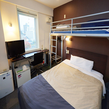 全客室にはセミダブルのベッドがご用意されていて、広々とした心地良い空間で眠る事ができます。また、全室にWi-Fiも完備されているため、ビジネスの方にもおすすめできます。長期滞在用のお得なプランもございますので、長期旅行をする方にもおすすめ。ホテルでは面倒なチェックアウトの手続きが不要です!