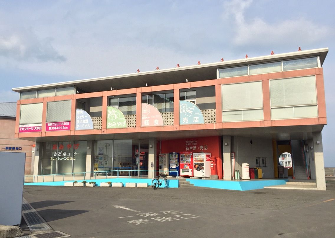 熊本港のフェリー乗り場です。やまさ海運が運営している高速連絡船フェリーもここ三池港から出ています。熊本フェリーの島原へ行く船で「オーシャンアロー」という超高速カーフェリーもあって船の中は豪華なお城のようになっています。豪華クルージングを楽しみながら島原へいけますよ。